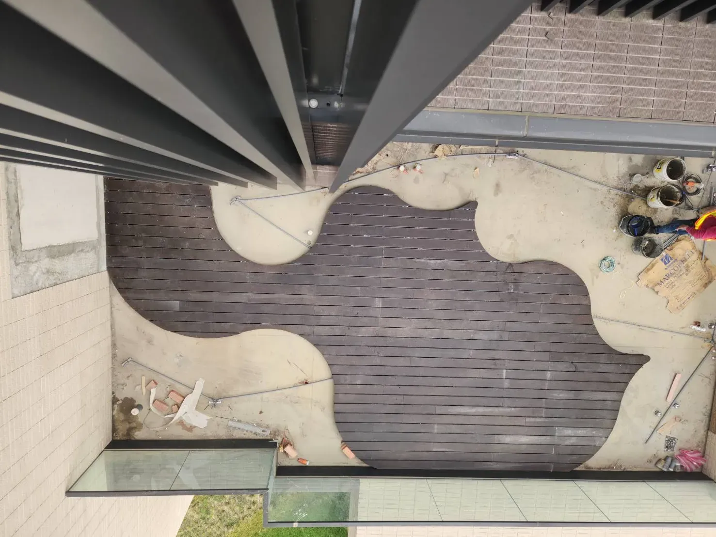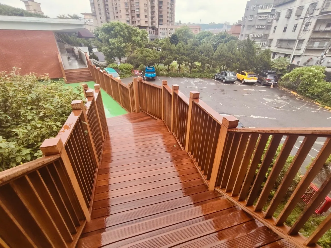 舊木地板都爛了換塑木,底座用不鏽鋼燒焊很穩,現在下雨也不怕發霉了,超滿意!